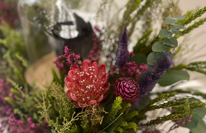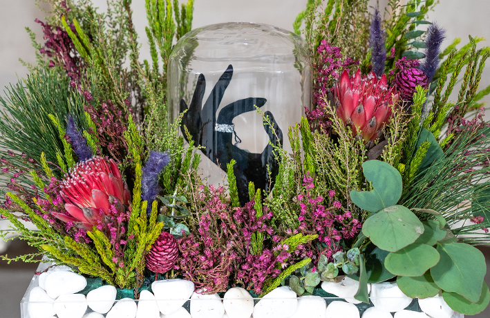 • ‏صينية دبل ( خاتم العروس ) مصممة بطريقه عصرية مع مانيكان يد ، ‏تم تنسيقها بالورد الطبيعي  ولون الورد يكون حسب اختياركم .