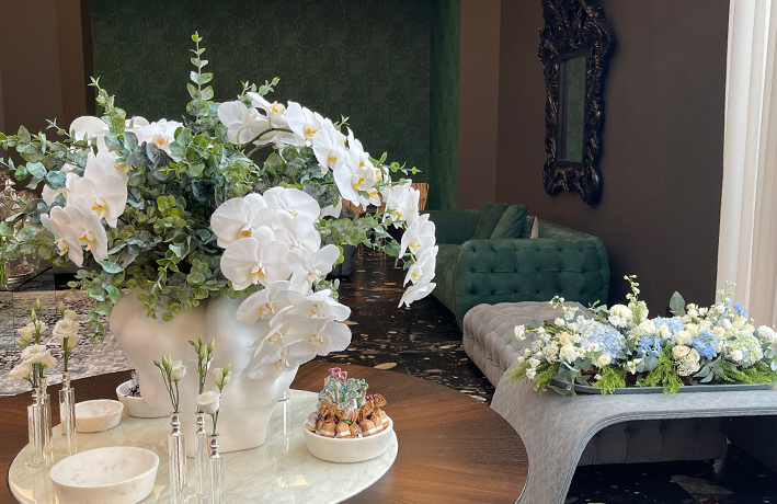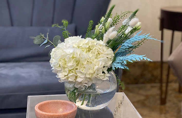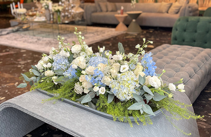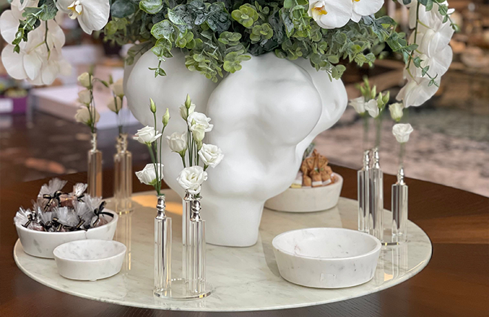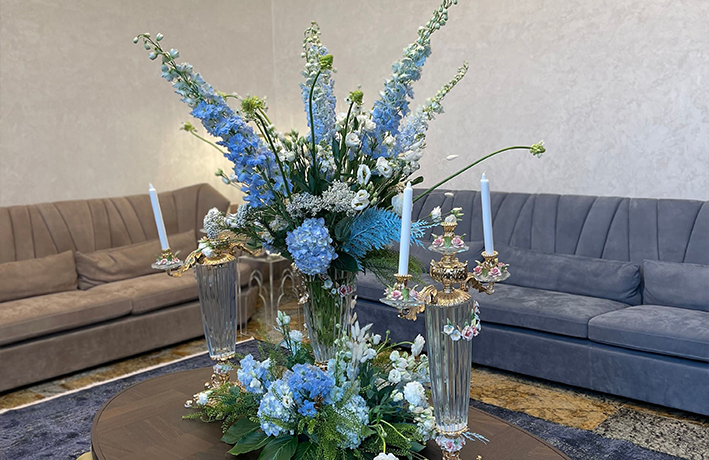 - تنسيق كامل بالورد الطبيعي والفازات والشموع