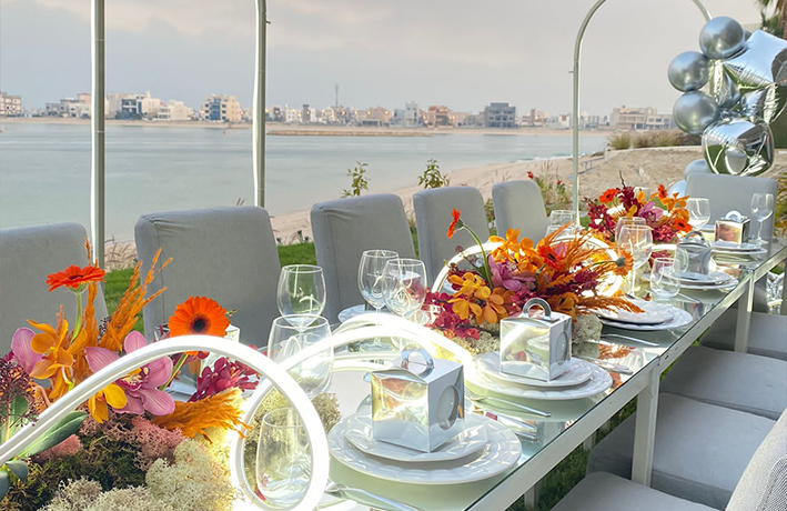 - تنسيق طاولة العشاء بالورد الطبيعي عدد ٣ بوكيهات