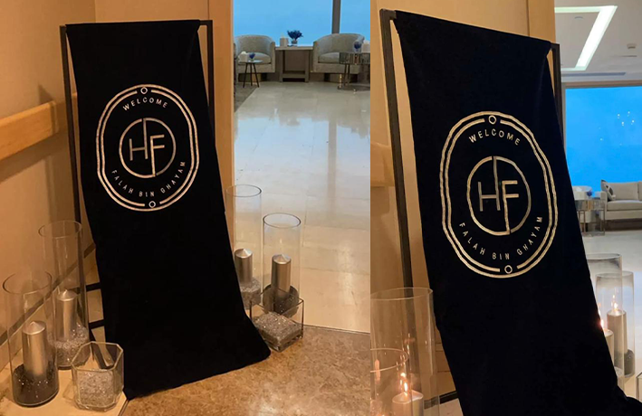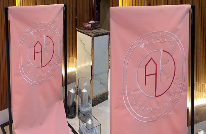 - إطار من الحديد ملبس بالخام المخمل الثقيل حسب اللون المطلوب ومطرز بالعبارة الخاصة بمناسبتكم .