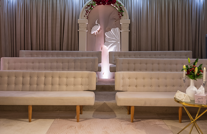 •  صوفا توضع في الصفوف الأمامية والخلفية للمناسبات ، يجلس عليها الضيوف لإضفاء أجواء من الراحة والفخامة على الحفل ، وتتميز بحجمها الملائم للمساحات الصغيرة .