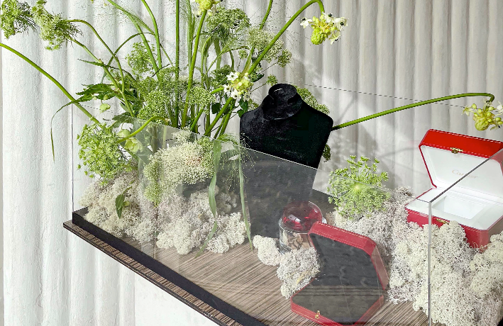 - صندوق من الاكريلك بقاعدة خشبية.