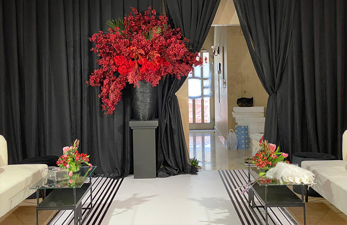 - تتكون من خلفية ، بالإضافة إلى صوفا منسقه بالورد الصناعي ممزوج بالورد بالطبيعي.
