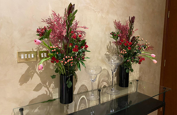 - طاولات أمامية صغيره مزينة بالورد الطبيعي