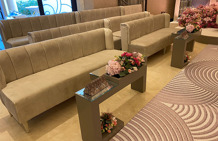 - طاولات أمامية صغيرة مزينة بالورد الطبيعي