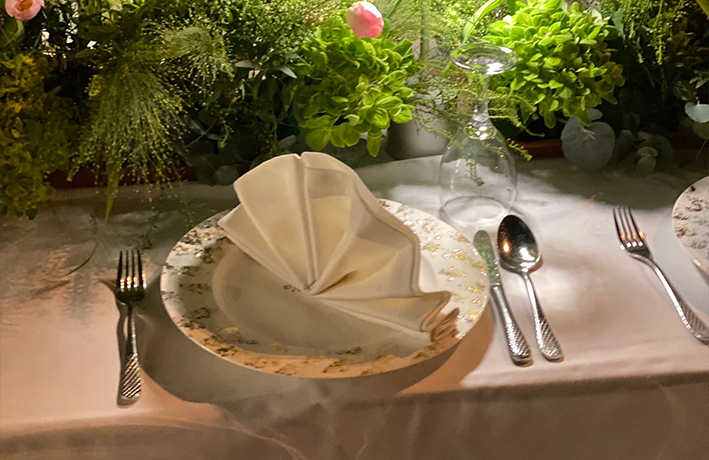 - تنسيق مكان العشاء بالورد الطبيعي بالاضافة إلى طاولة العشاء .