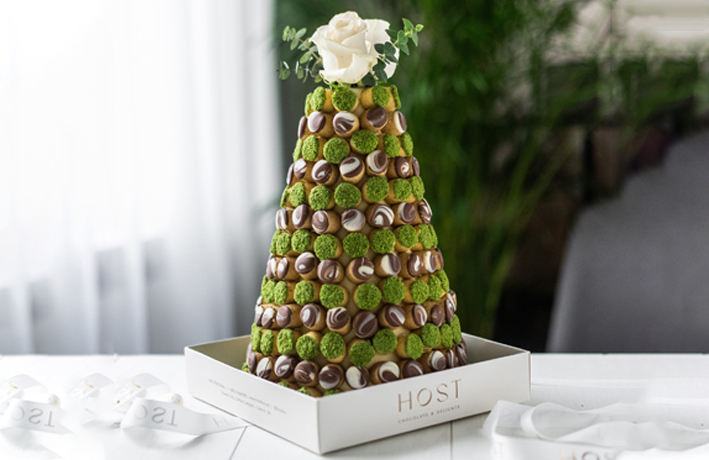 • هرم غريبة الدارسين والفستق ومزين بالزهور     .