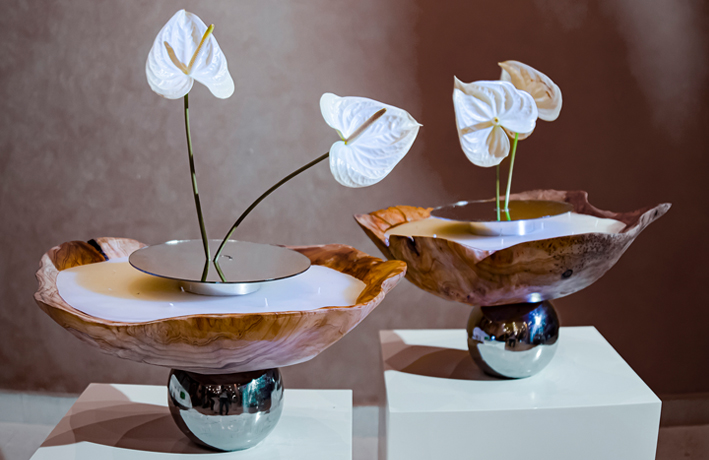 •  التزيين : قاعدة زجاجية وورد طبيعي .