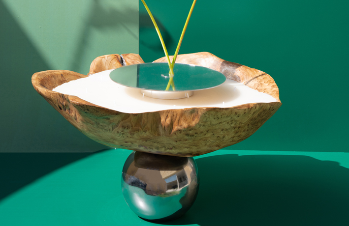 • ‏ ‏قالب خشبي فاخر وبداخله قالب شمعي تصميم خاص وقاعدة دائرية   الشكل
