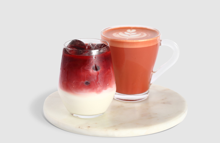 - كورتادو ، فلات وايت ، لاتيه ، ماتشا لاتيه ، ريد فيلفت لاتيه ، سبانيش لاتيه ، آيسد فانيلا شيكن ، كابتشينو ، اسبريسو ماكياتو ، شوكولاته ساخنة