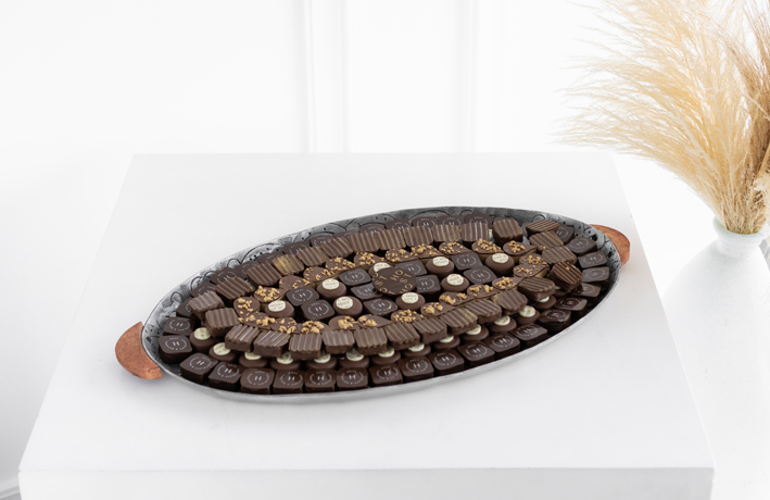 - مكون من حشوات مختلفة ومغطى بأجود أنواع الشوكولاتة