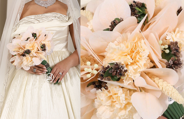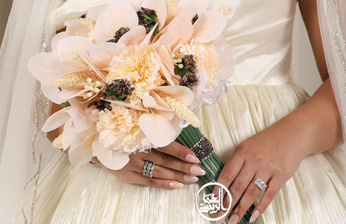 - مسكة عروس من الورد الصناعي من تصميم عمر الريس .