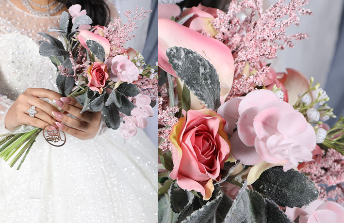 • مسكة مصممة من الورد الصناعي ، من تنسيق المصمم عمر الريس .