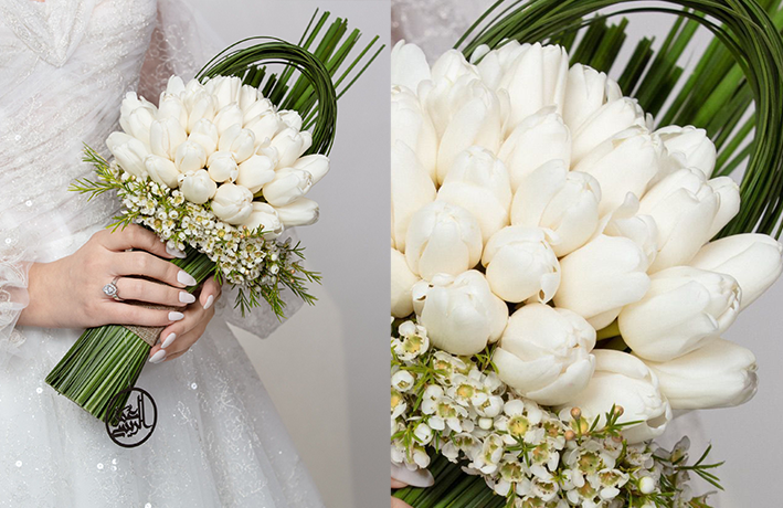 - مسكة مصممة من الورد الطبيعي، من تنسيق المصمم عمر الريس .