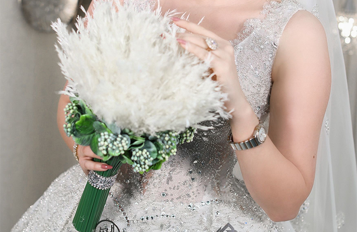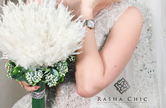 - مسكة مصممة من الورد الصناعي ، من تنسيق المصمم عمر الريس .