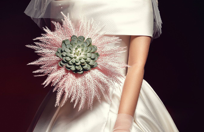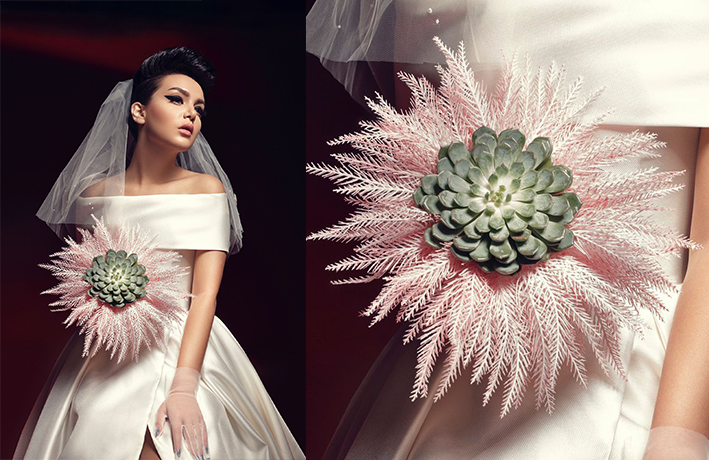 - مسكة عروس من الورد الصناعي من تصميم عمر الريس .