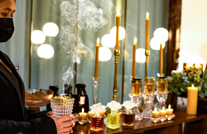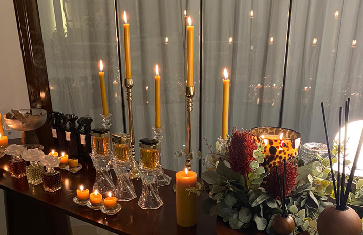 - تنسيق كامل بالورد الصناعي الفاخر والإضاءة .