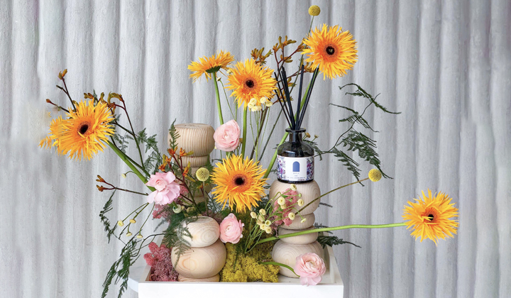 - صينية خشبية منسقة بالورد الطبيعي مع ديكورات كور خشبية .