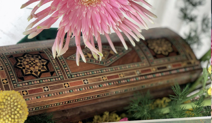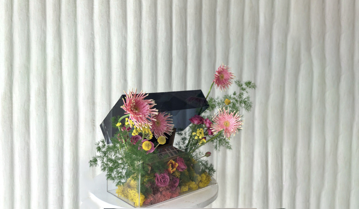 - صندوق أكريلك ، منسق بالزهور الطبيعية.