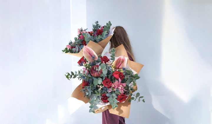 - باقة واحدة من الزهور الطبيعية ملفوفة بورق.
