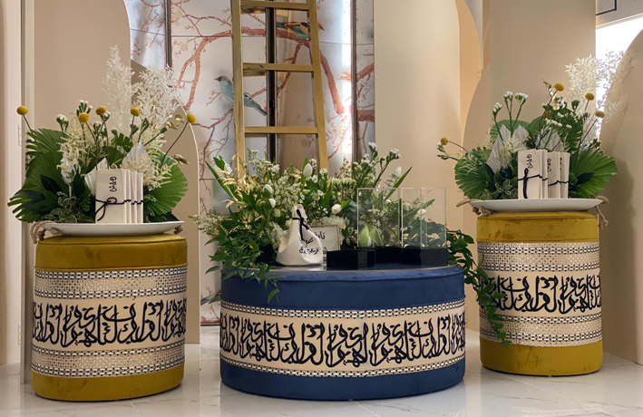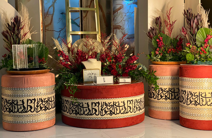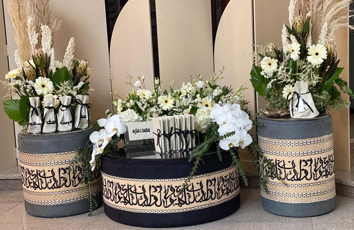 - اسم المعاريس مطرز مع إستاند كلاريك شفاف