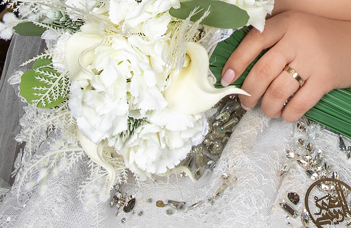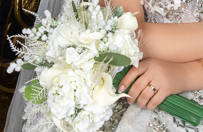 - مسكة مصممة من الورد الصناعي ، من تنسيق المصمم عمر الريس .
