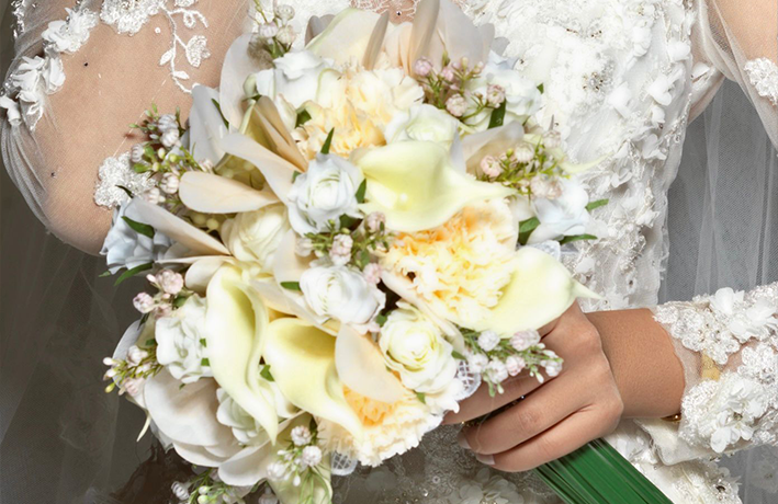 - مسكة عروس من الورد الصناعي من تصميم عمر الريس .