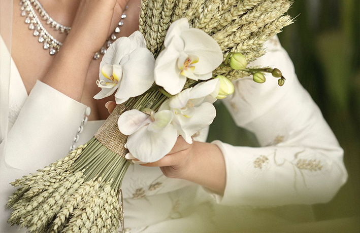 - مسكة مصممة من الورد الصناعي ، من تنسيق المصمم عمر الريس .