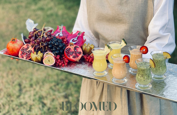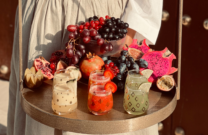 - العصائر الطبيعية: تقدم في صينية الفواكة : فراولة ، ليمون نعناع ، برتقال ، كوكتيل ، مانجا