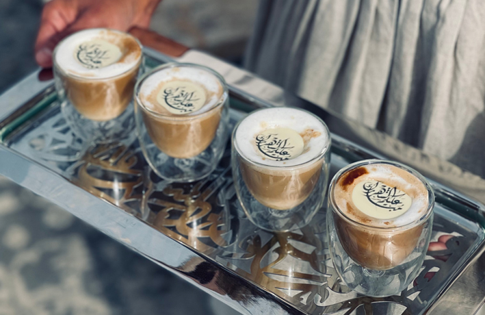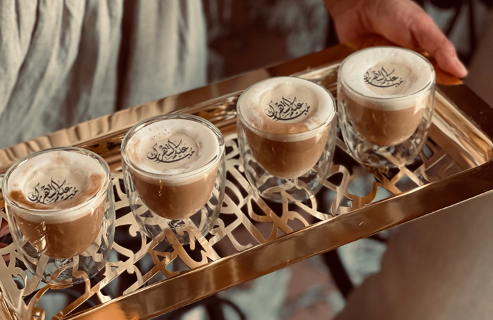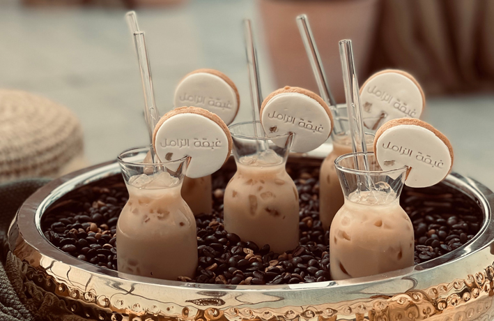 - عدد ٣ أنوع قهوة: عربية ، تركية ، كابتشينو مع طباعة الأسم على قطعة الشوكليت ، باردة : سبانيش لاتيه، كراميل لاتيه ، فانيلا لاتيه وتقدم مع كوكيز مسج من اختياركم .
