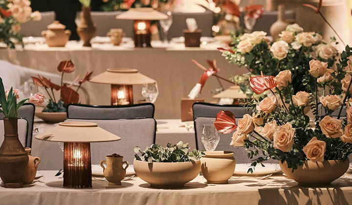 - تنسيق الزهور على المنصة بالإضافة إلى فازات من الفخار