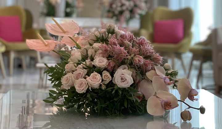 - تنسيق طاولة التوزيعات بالورد الطبيعي