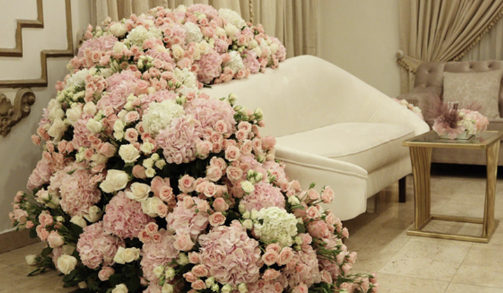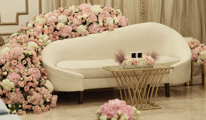 • تنسيق مكان جلوس العروس بأرقى أنواع الورد الطبيعي (خلف الصوفا) ويمكنكم اختيار اللون الذي يناسب ذائقتكم وذلك بعد دفع العربون .